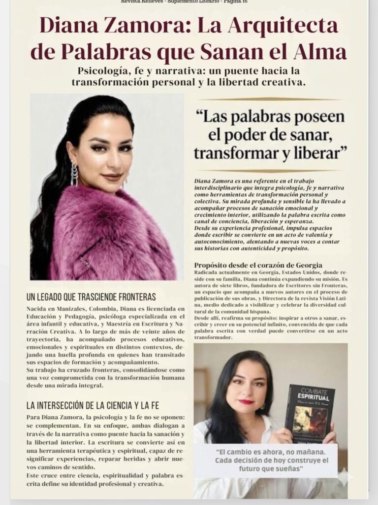 Diana Emilce Zamora es una destacada profesional colombiana, nacida en Manizales, con una sólida trayectoria en el campo de la educación, la psicología y la escritura creativa. Licenciada en Educación y Pedagogía, psicóloga especializada en el área infantil y educativa, y magíster en Escritura y Narración Creativa, ha dedicado más de dos décadas a acompañar procesos de crecimiento emocional, formativo y espiritual.